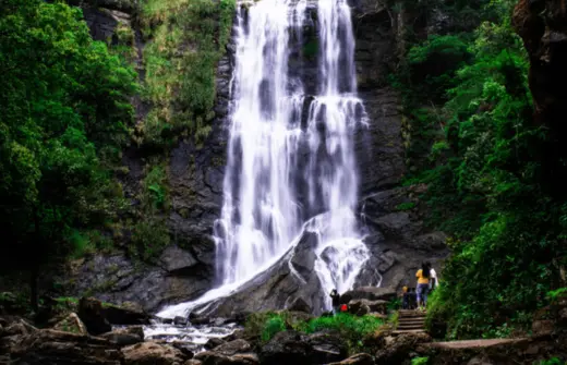 Waterfall amidst coffee plantations.