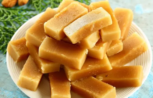 Rich sweet made from ghee and chickpea flour.