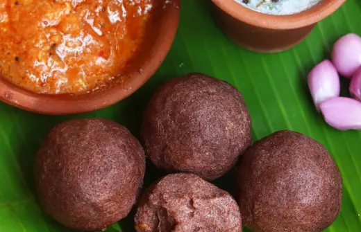 Finger millet balls are typically served with sambar or curry.
