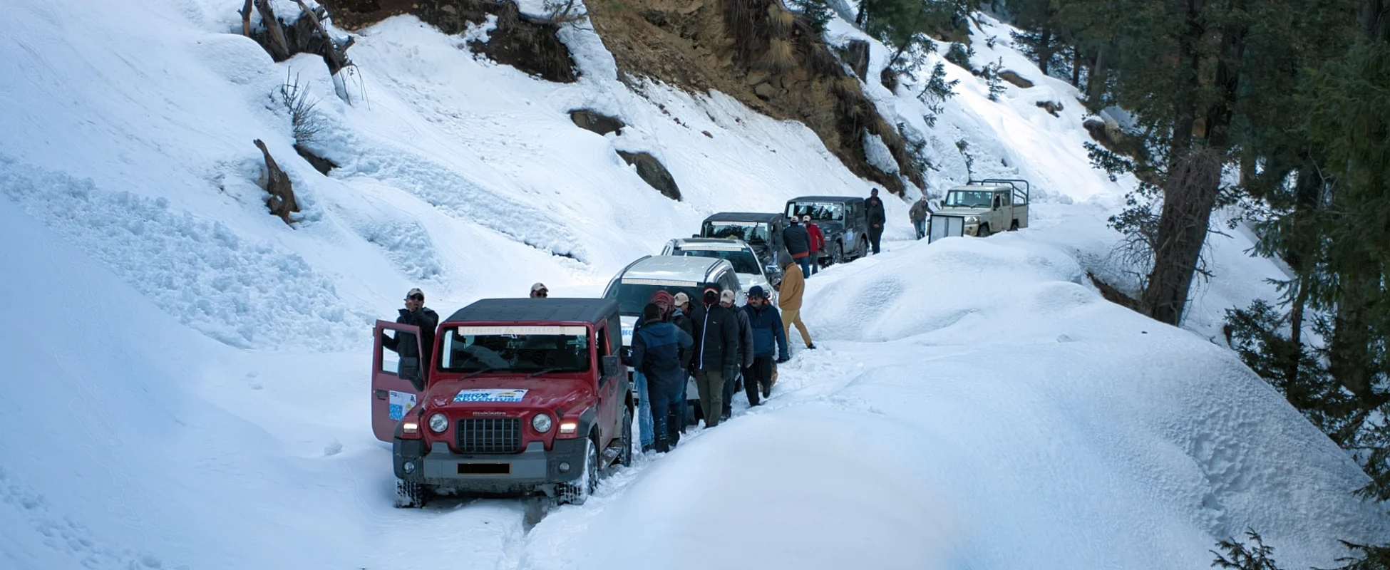 Begin your adventurous road trip from Manali as the convoy drives through scenic Himalayan roads toward the charming hill town of Narkanda.