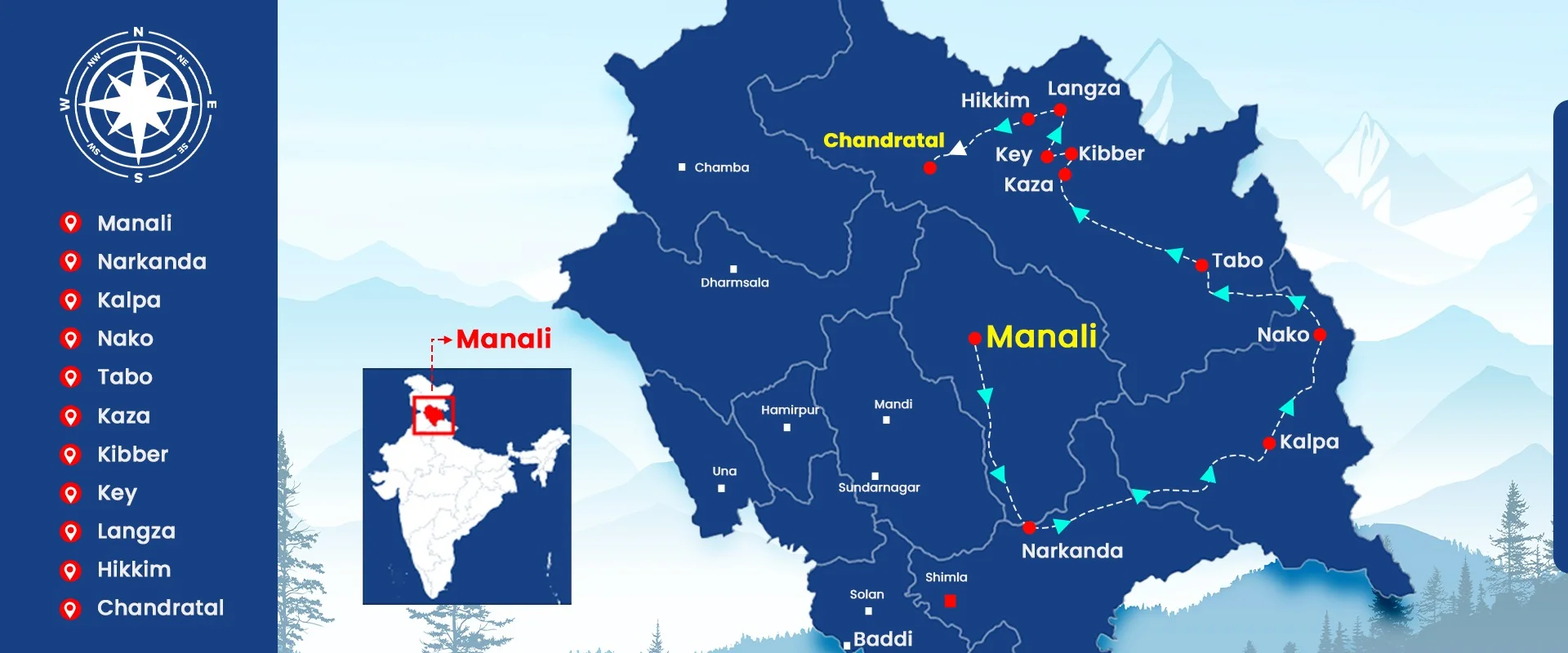 Starting from the beautiful mountain town of Manali, the expedition drives through scenic Himalayan highways, apple orchards, dramatic cliffs, and remote villages of Spiti Valley, offering a perfect blend of adventure, culture, spirituality, and off-roading thrill.